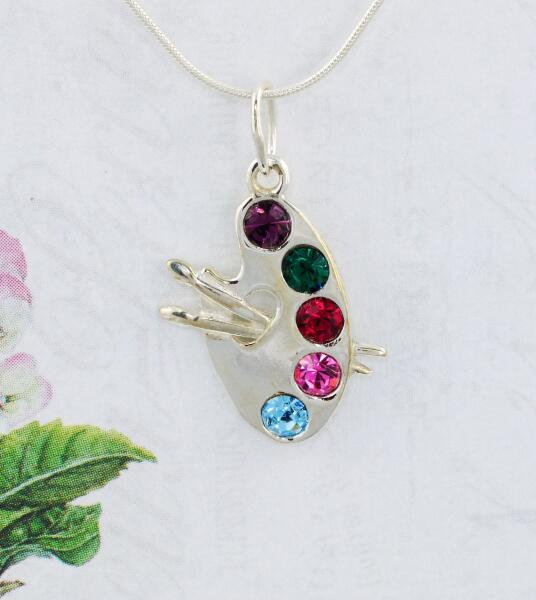 925 tisztaságú ezüst festő paletta medál színes cirkóniákkal!